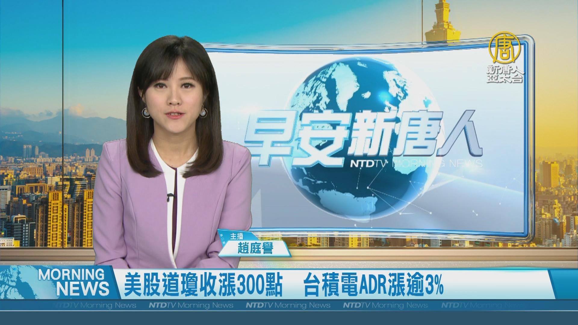2024-10-17 08:15:36早安新唐人最新市場動態先來關心,美股主要指數今天收紅,受到銀行股和小型股的提振,美國道瓊工業指數再創歷史新高,週三上漲337點,標普500距離歷史高點,僅一步之遙,費半上漲0.21%,輝達回血漲3.13%,台積電ADR漲0.19%。
