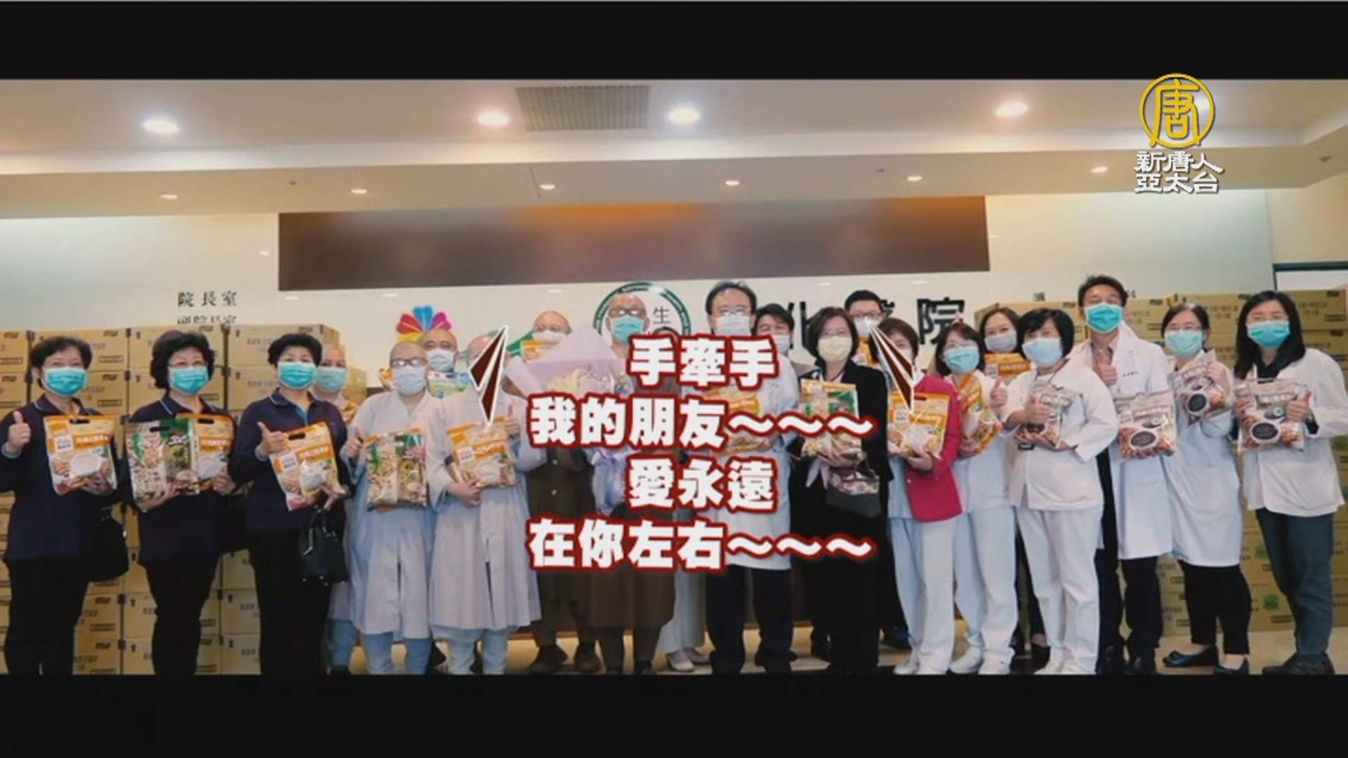 不分部門,職位無差別,這是衛福部立彰化醫院員工,同唱抗疫神曲《手牽手》,為部桃加油。