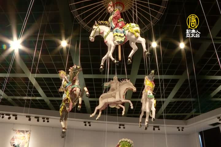 已故剪黏藝師陳篡地之子 陳威豪:「他的所做的每一件作品,他都會要求要達到他的個人的品質的標準,對所以這對於我來講,專注在一件事情上面做一輩子的事,我父親這樣子的精神對我來講,是影響非常的大。」最特別的是中央有12隻交趾陶做成的馬匹有的吊在半空中,遠看像是旋轉木馬。