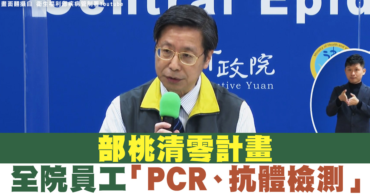 【新唐人亞太台 2021 年 02 月 01 日訊】中央流行疫情指揮中心今(1)日下午召開記者會,專家諮詢小組召集人張上淳也出席記者會說明部桃現況。針對「部桃清零計畫」,張上淳表示,會讓全體同仁,包含外包人員進行PCR與抗體檢測。