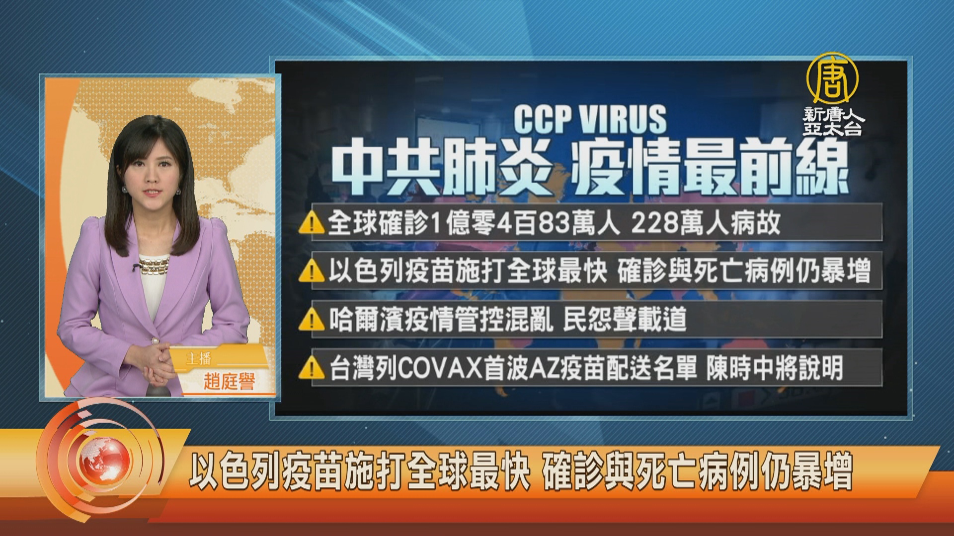 【新唐人亞太台 2021 年 02 月 05 日訊】繼續關心疫情消息,全球確診1億零4百83萬人,228萬人病故。以色列疫苗施打全球最快 確診與死亡病例仍暴增。哈爾濱疫情管控混亂 民怨聲載道。台灣列COVAX首波AZ疫苗配送名單 陳時中下午兩點將說明。