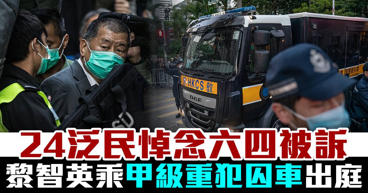 24泛民悼念六四被訴 黎智英乘甲級重犯囚車出庭