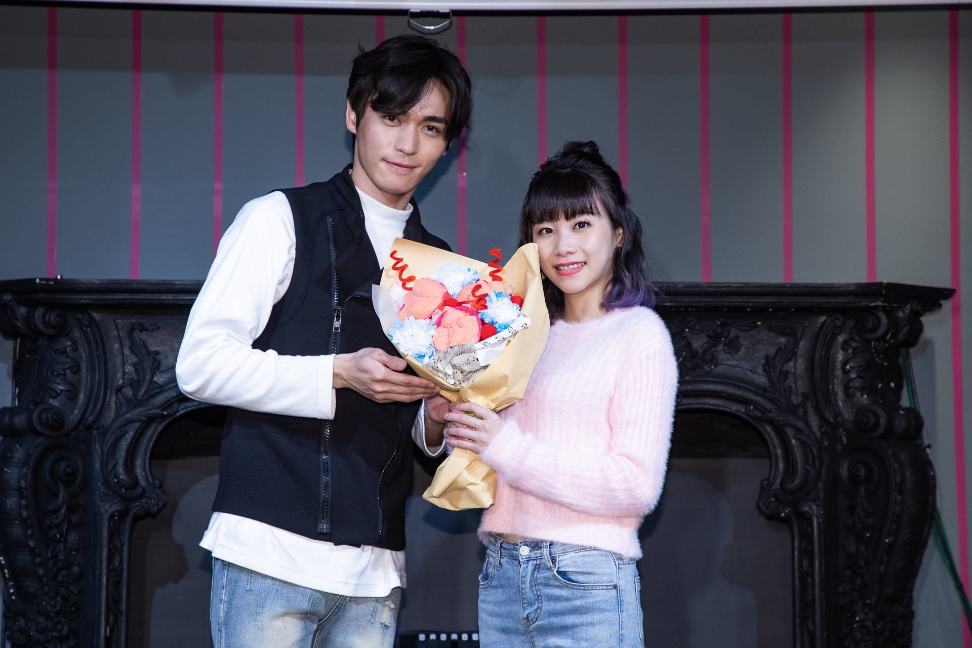 記者會現場,王振諾被窩情人,也貼心準備了情人節禮物給路路,是自己親手做的草莓口味發糕花束,謝謝她願意來幫我站台。路路說:我已經十年沒有收過花了,覺得送花比較不實際,幸好他送的是能吃的發糕,我今晚就會吃掉。