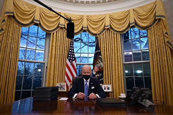 2021年1月20日,美國總統拜登在橢圓形辦公室。 (Getty Images)