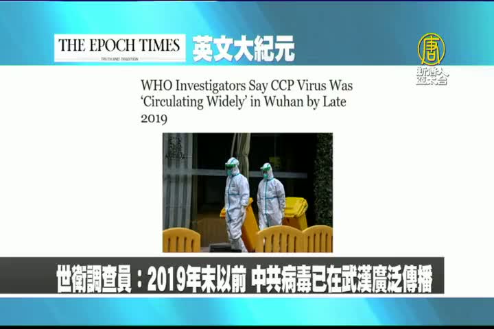 【新唐人亞太台 2021 年 02 月 16 日訊】首先來看到美國大紀元英文版報導:世衛調查員表示,2019年末以前,中共病毒已在武漢廣泛傳播。