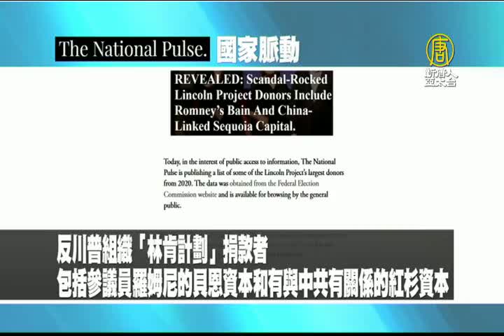 【新唐人亞太台 2021 年 02 月 16 日訊】繼續是美國國家脈動的報導:反川普組織「林肯計劃」捐款者,包括參議員羅姆尼的貝恩資本和有與中共有關係的紅杉資本。