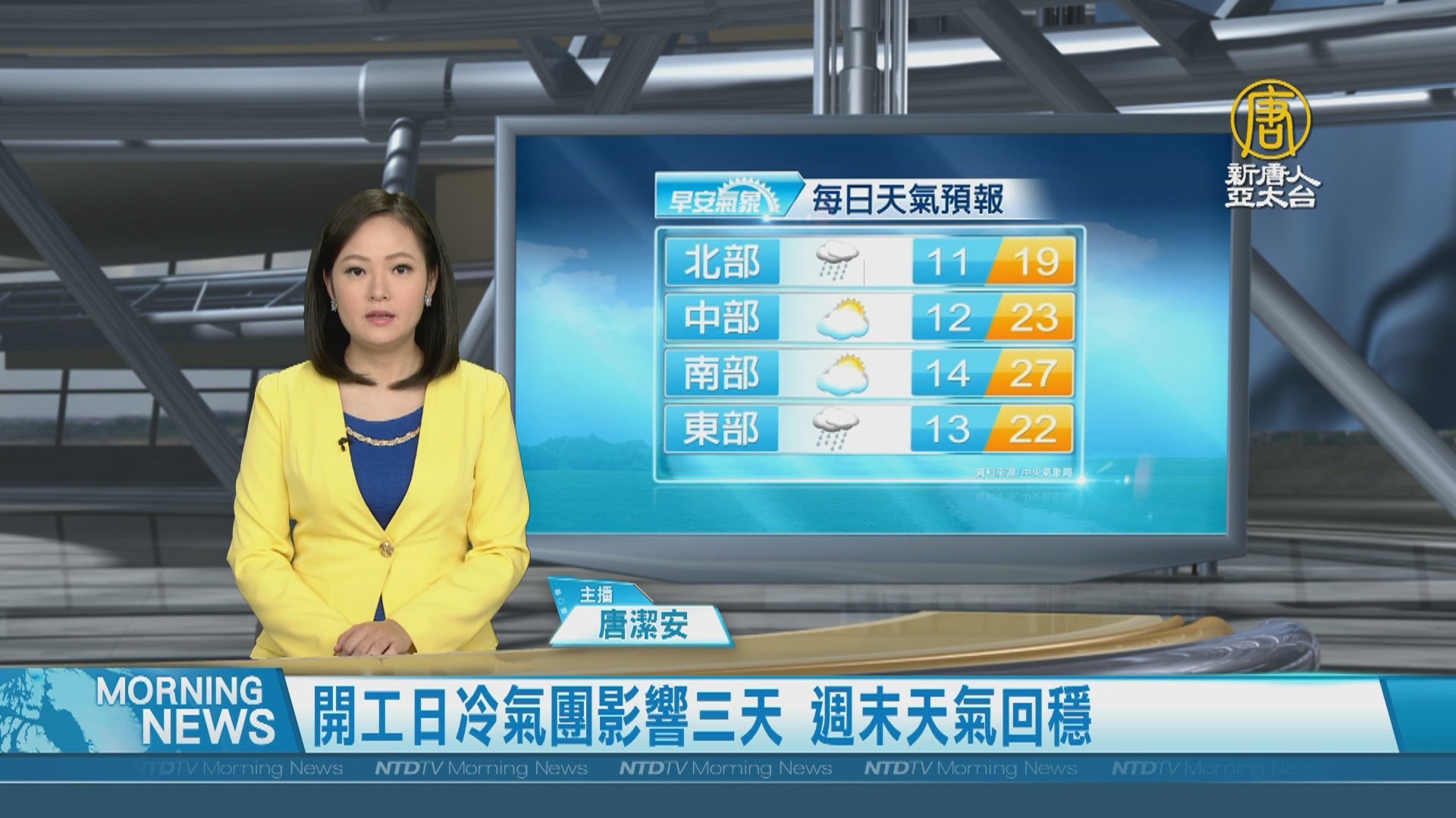 【新唐人亞太台 2021 年 02 月 17 日訊】歡迎您收看2月17日的早安新唐人,我是唐潔安,先來帶您關心今天的天氣情況。今天清晨冷氣團南下,北台灣在白天就能感受到氣溫明顯變冷,晚上各地也逐漸變冷,深夜最低只剩12度。明天水氣會逐漸減少,天氣由濕冷轉為乾冷,這波冷空氣預計將影響台灣3天,最冷下探8度。週末,各地氣溫將逐漸回暖。帶您一起來看到國際媒體重要訊息。