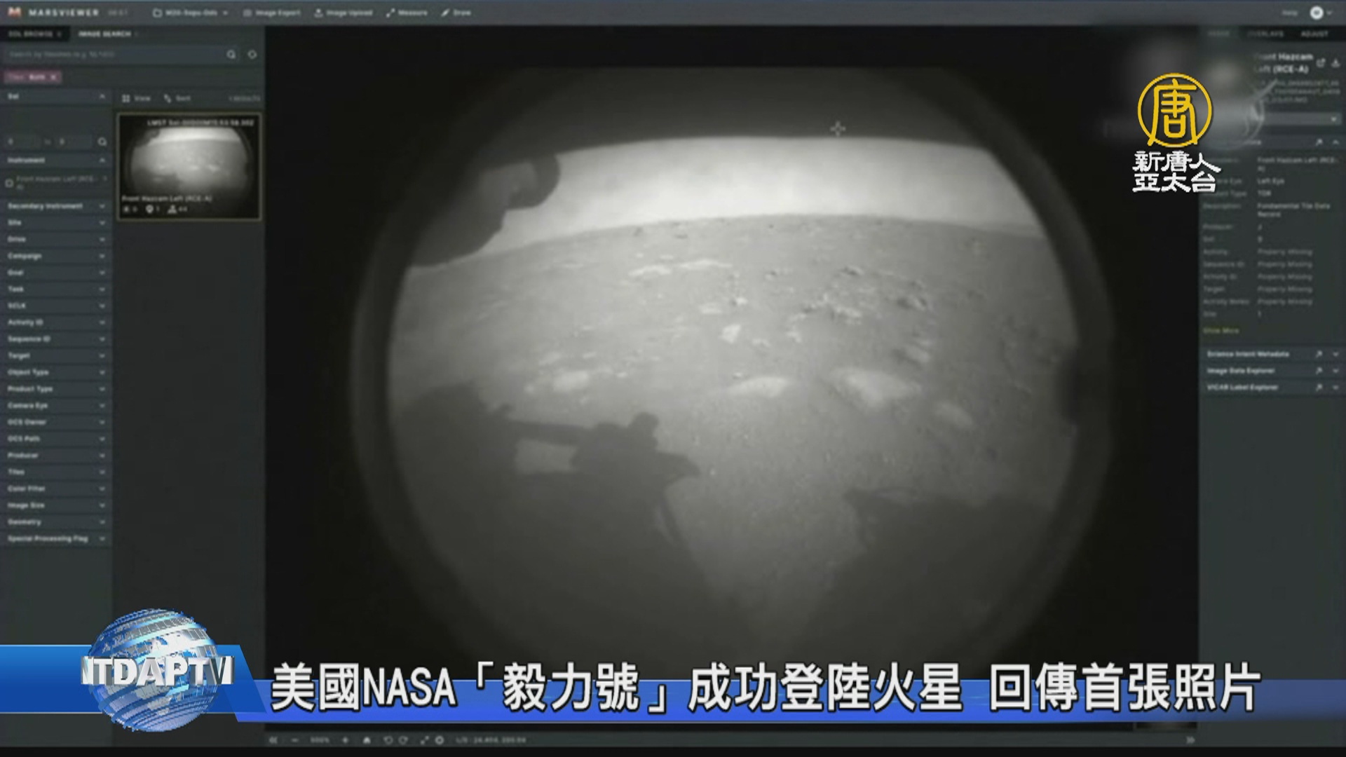 【新唐人亞太台 2021 年 02 月 19 日訊】美國太空總署的「毅力號」探測器,經歷6個半月旅程,在美東時間2月18日下午,成功降落在火星表面,開始了尋找火星生命的旅程,還傳回了第一張火星照片。