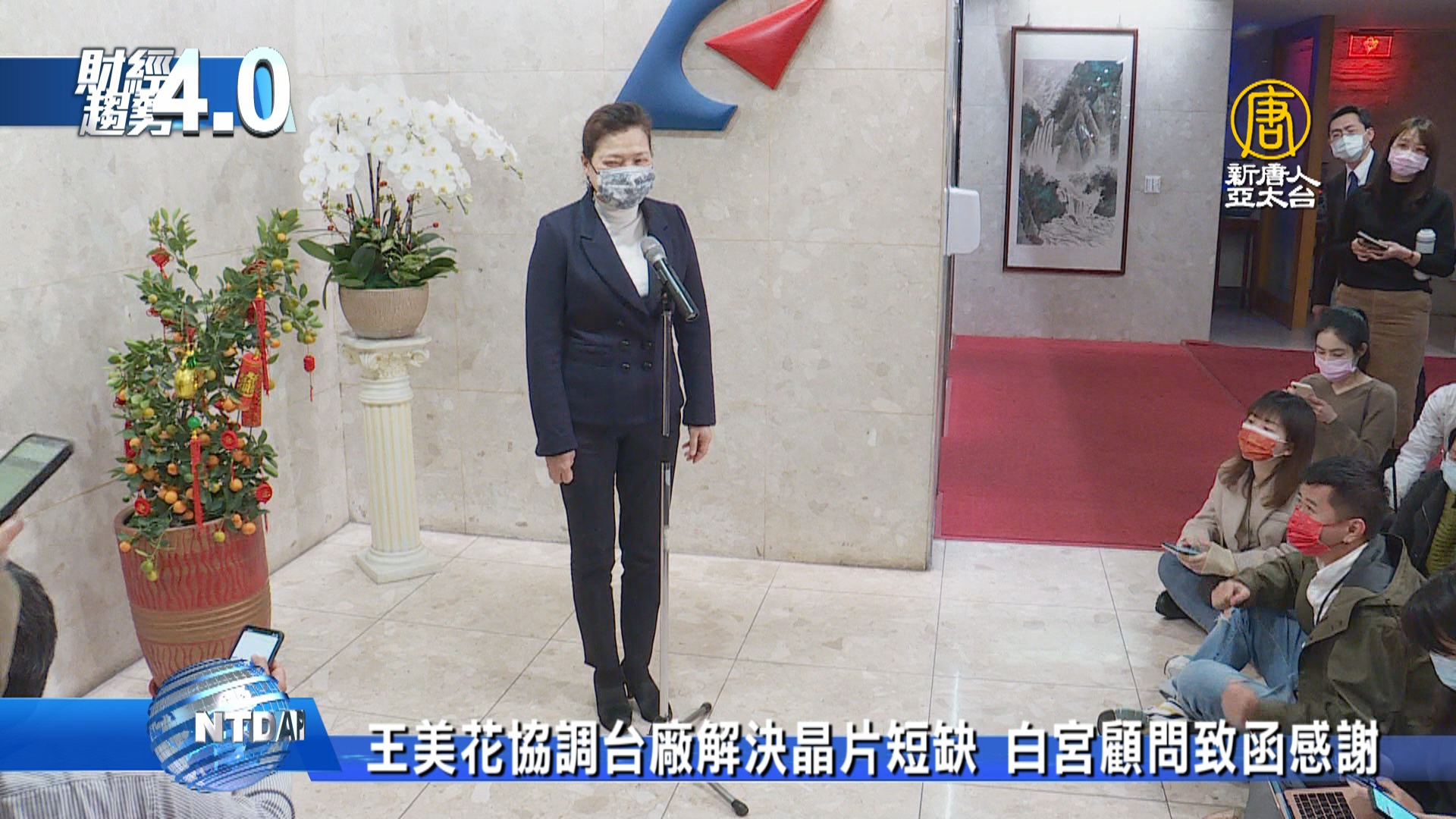 【新唐人亞太台 2021 年 02 月 20 日訊】全球晶片荒,彭博報導,白宮首席經濟顧問狄斯致函,尋求台灣政府協助解決車用晶片短缺問題,也在信中感謝經濟部長王美花,親力親為提供協助,並轉達美國汽車業的憂心。不過王美花表示,還未收到信件,了解內容後再跟外界報告,目前台灣廠商,已相當努力在處理晶片缺貨問題。