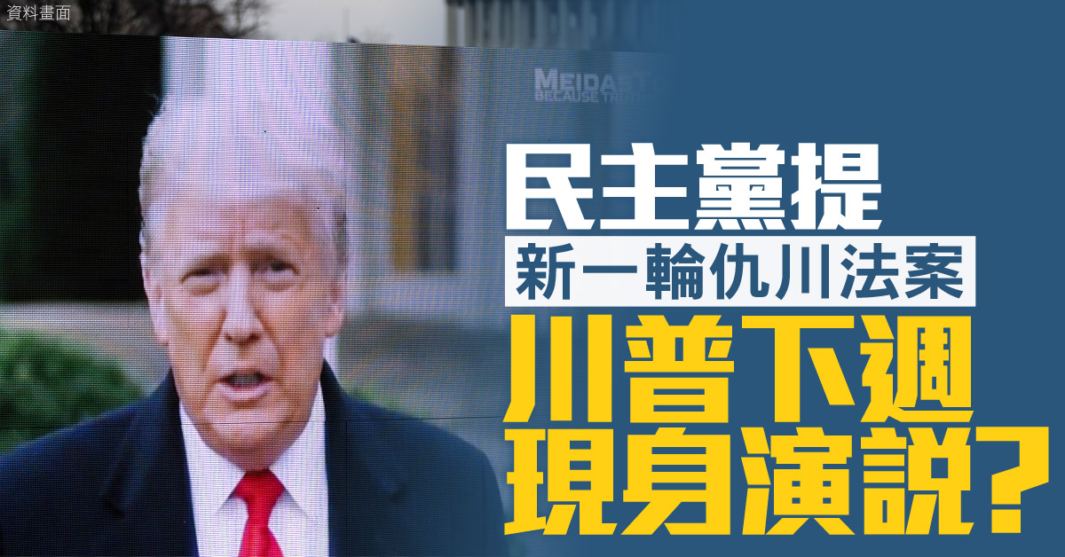 民主黨提新一輪仇川法案 川普下週現身演說?