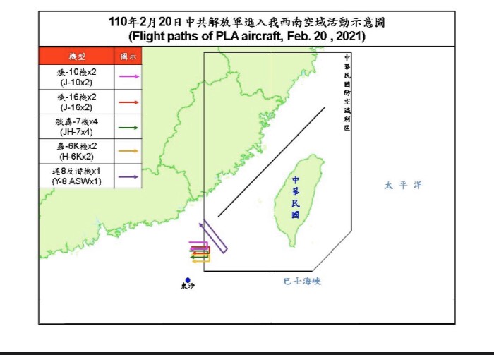 20210220共軍擾台航機圖(國防部提供)。(國防部提供)
