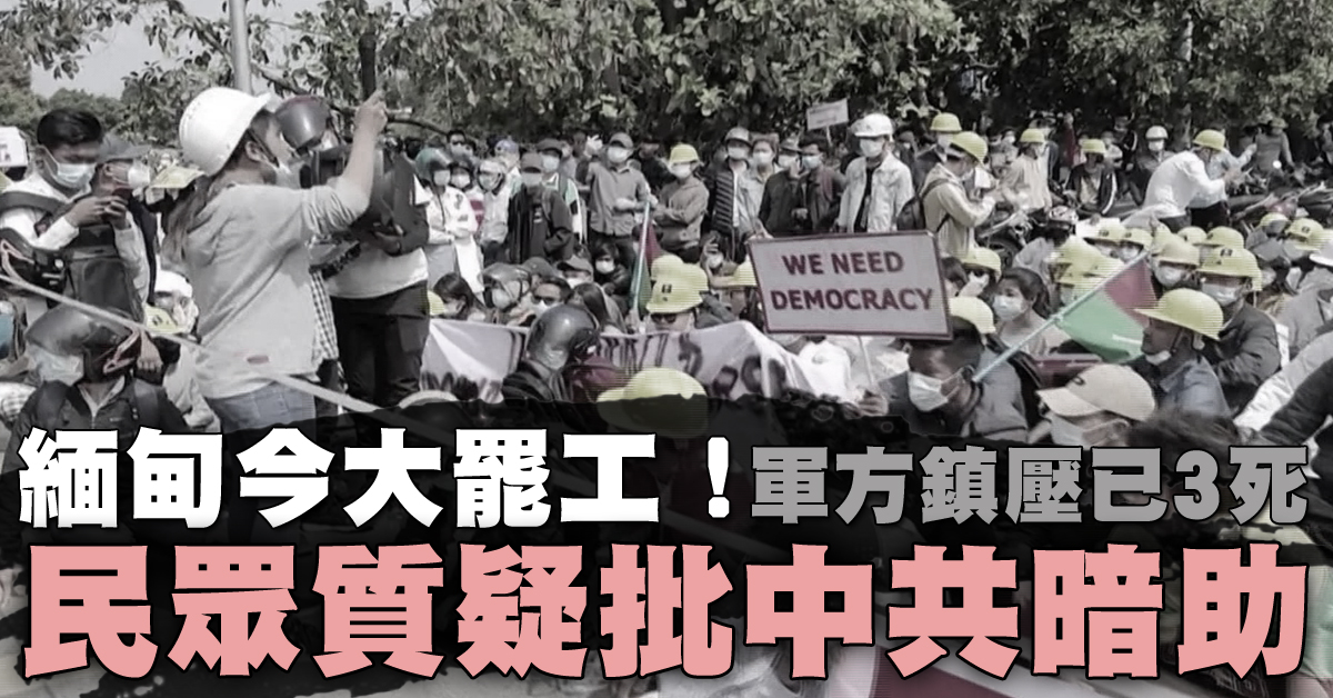 緬甸今大罷工!軍方鎮壓已3死 民眾質疑批中共暗助