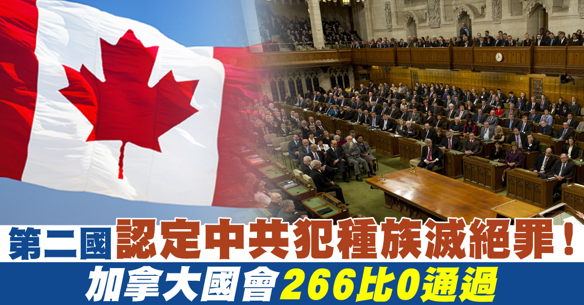 第二國認定中共犯種族滅絕罪!加拿大國會266比0通過