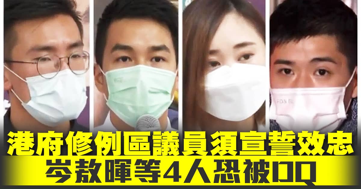 港府修例區議員須宣誓效忠 岑敖暉等4人恐被DQ