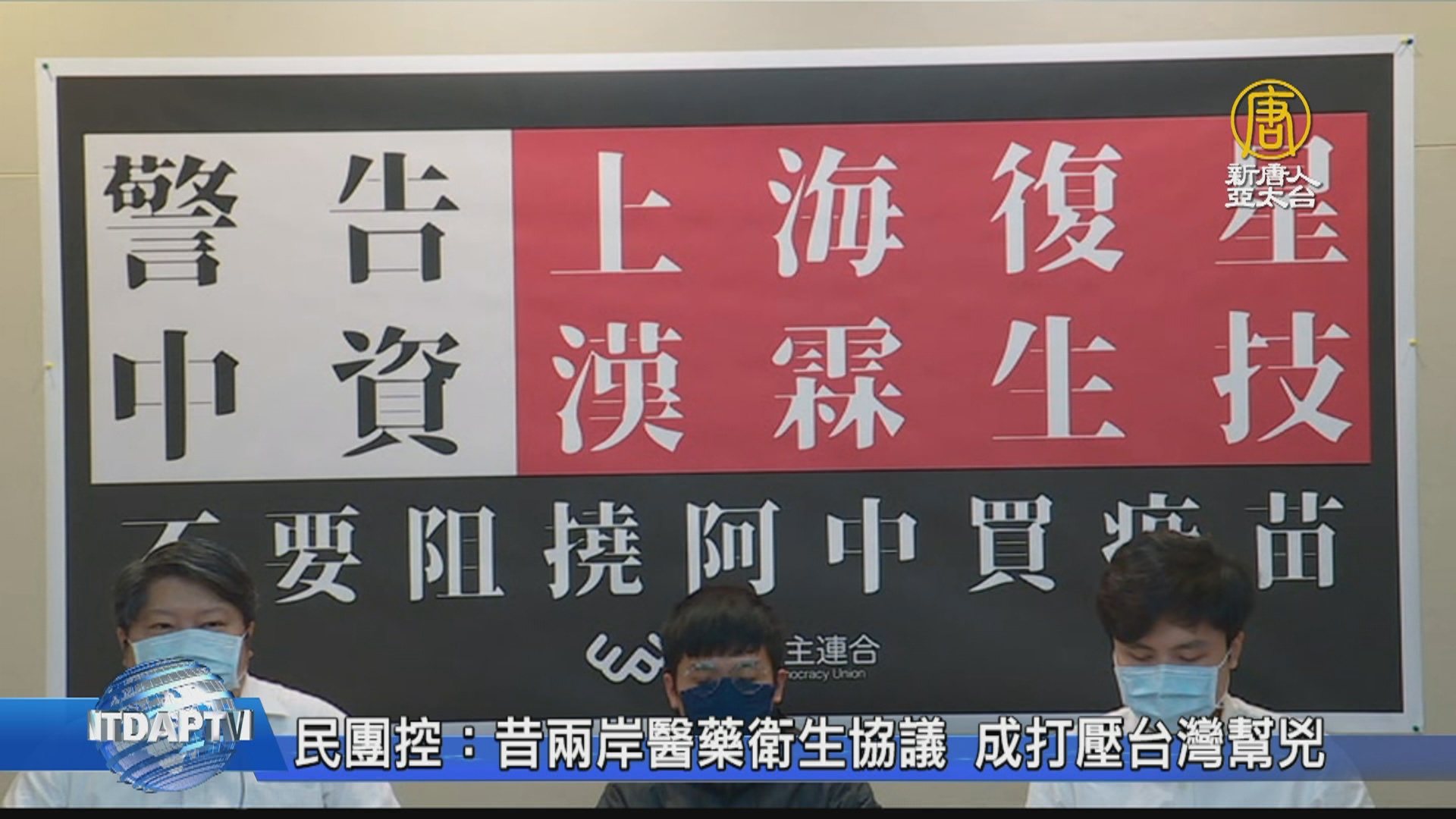 【新唐人亞太台 2021 年 02 月 24 日訊】台灣防疫指揮中心打算採購德國BNT疫苗,之前爆出受到中國代理商「上海復星」的阻撓。台灣民間團體今天(24)記者會,揭露中國復星公司實質控制人具有中共統戰背景外,也抨擊前朝政府簽訂的《兩岸醫療合作協議》,現在恐已成為中共打壓台灣的幫兇。