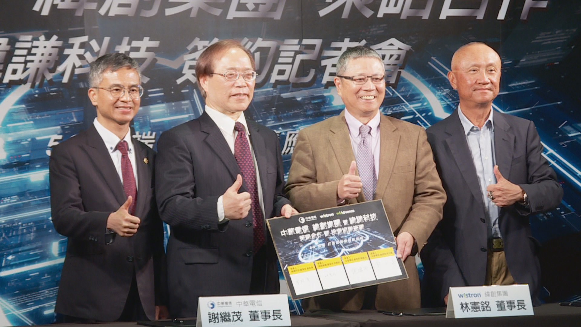 主持人:「中華電信、緯創集團策略合作,正式的簽約成功。」