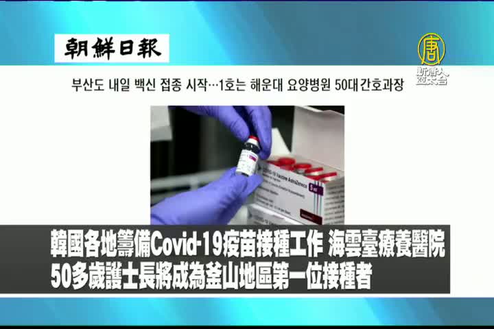 【新唐人亞太台 2021 年 02 月 26 日訊】來看到韓國朝鮮日報報導:韓國各地籌備Covid-19疫苗接種工作。海雲臺療養醫院50多歲護士長將成為釜山地區第一位接種者。