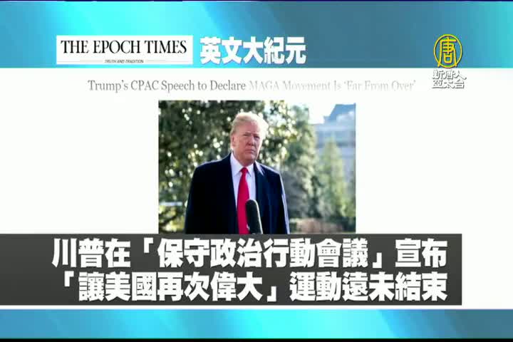 【新唐人亞太台 2021 年 03 月 01 日訊】首先來看到美國大紀元英文版報導:美國前總統川普在「保守政治行動會議」上宣布,「讓美國再次偉大」的運動遠未結束。