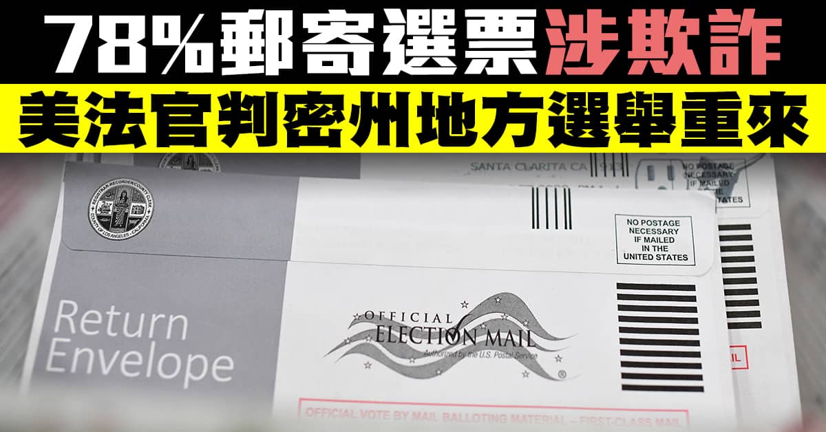 78%郵寄選票涉欺詐 美法官判密州地方選舉重來