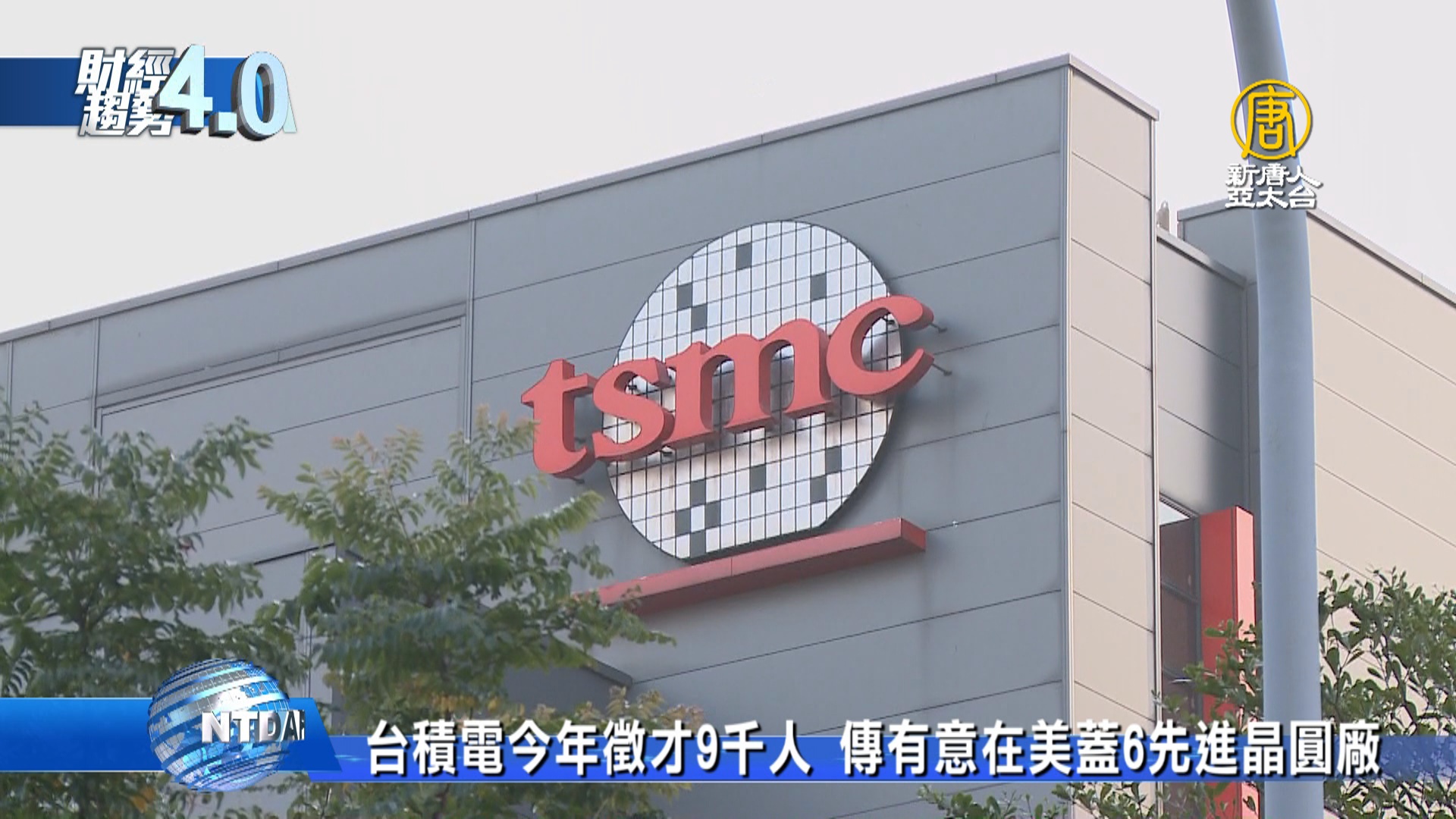【新唐人亞太台 2021 年 03 月 06 日訊】首先來看到,晶圓代工龍頭台積電,2021年校園徵才活動,3月5日啟動。台積電今年總共預計招募近9千名新血,超越去年的8千名,創歷年新高;日經新聞指出,台積電加速美國布局,預計投入600名人力,另外,台積電還傳出有意在美國亞利桑那州,蓋六座12吋先進晶圓廠。