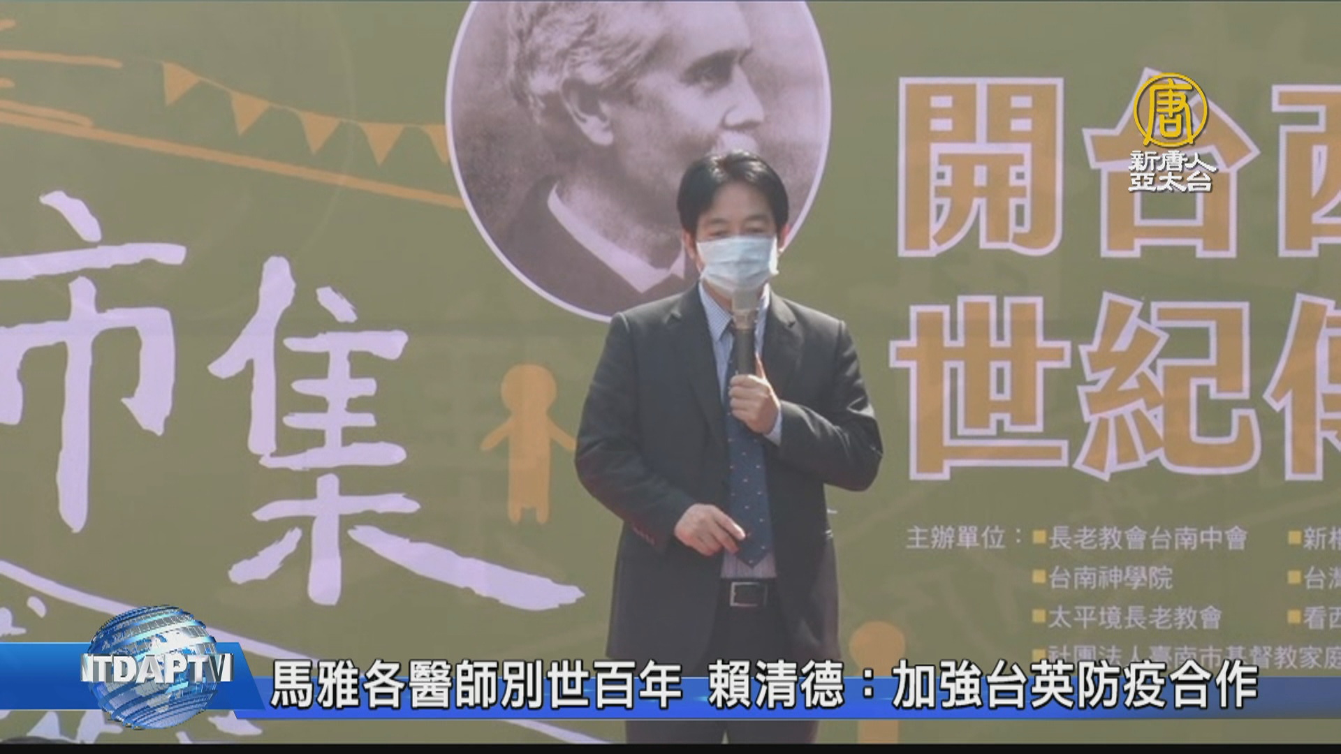 【新唐人亞太台 2021 年 03 月 06 日訊】副總統賴清德今(6)日在台南出席「馬雅各醫師別世百週年紀念活動」,馬雅各是英國長老教會派遣的第一位駐台醫療宣教師。賴清德表示,感念馬雅各醫師,台灣要加強與英國合作,共同防疫。