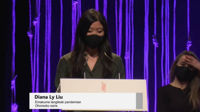 溫玉霞指出,3月8日國際婦女節前夕,西班牙Bizkaia省的「就業、社會包容暨平等司」為表揚婦女的貢獻並呼籲男女平等,特別舉辦活動頒獎給傑出的女性工作者,李慧伶獲此殊榮。