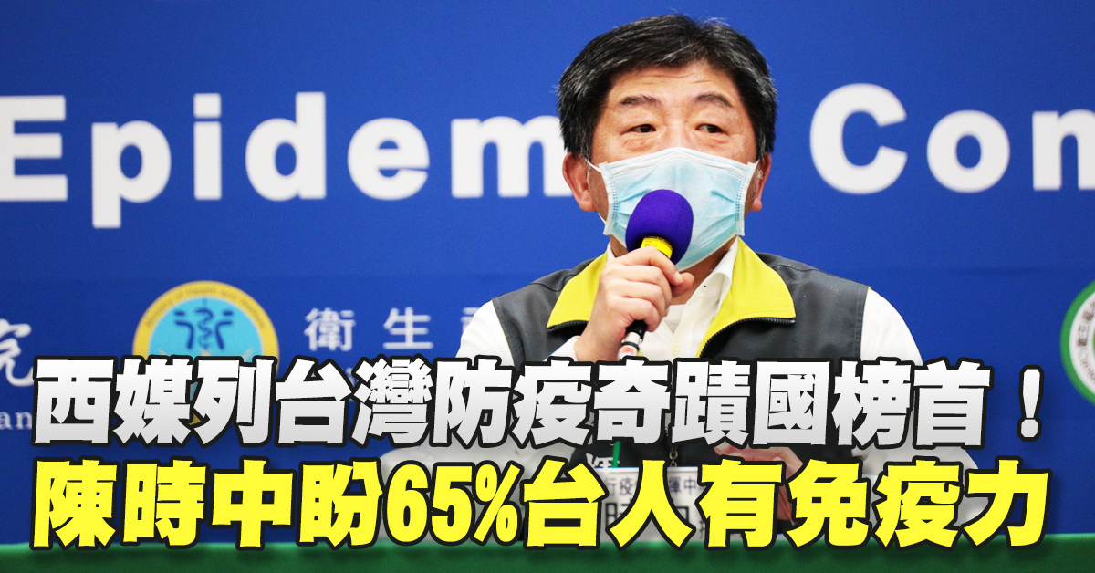 西媒列台灣防疫奇蹟國榜首!陳時中盼65%台人有免疫力