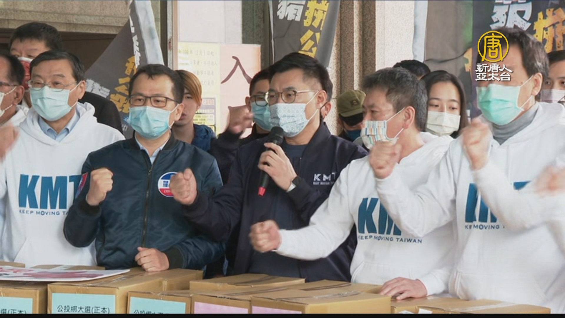 【新唐人亞太台 2021 年 03 月 09 日訊】今天是國民黨主席江啟臣,上任滿週年,一大早,就率領立委林為洲等人,前往中選會,送交「反萊豬」、「公投綁大選」兩項公投案連署書,不過,卻遭民進黨質疑,江啟臣大動作將公投連署送件,是藉機拉抬個人主席選舉的選舉策略。
