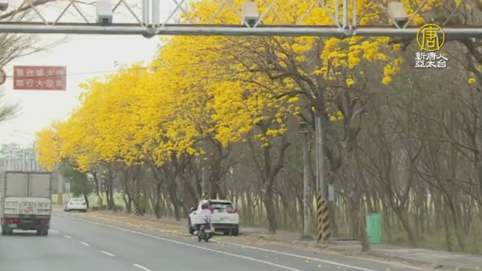 【新唐人亞太台 2021 年 03 月 09 日訊】春暖花開加上缺水問題,使得彰化的黃花風鈴木延期開花,目前正是盛開時期,彰化縣溪州鄉溪厝社區台1線兩旁、二水坑內,以及芬園的彰南路上,全都開滿了黃花風鈴木,吸引遊客拍照,不過卻有地區的攤販趁機賺取觀光財,讓民眾覺得有些煞風景。