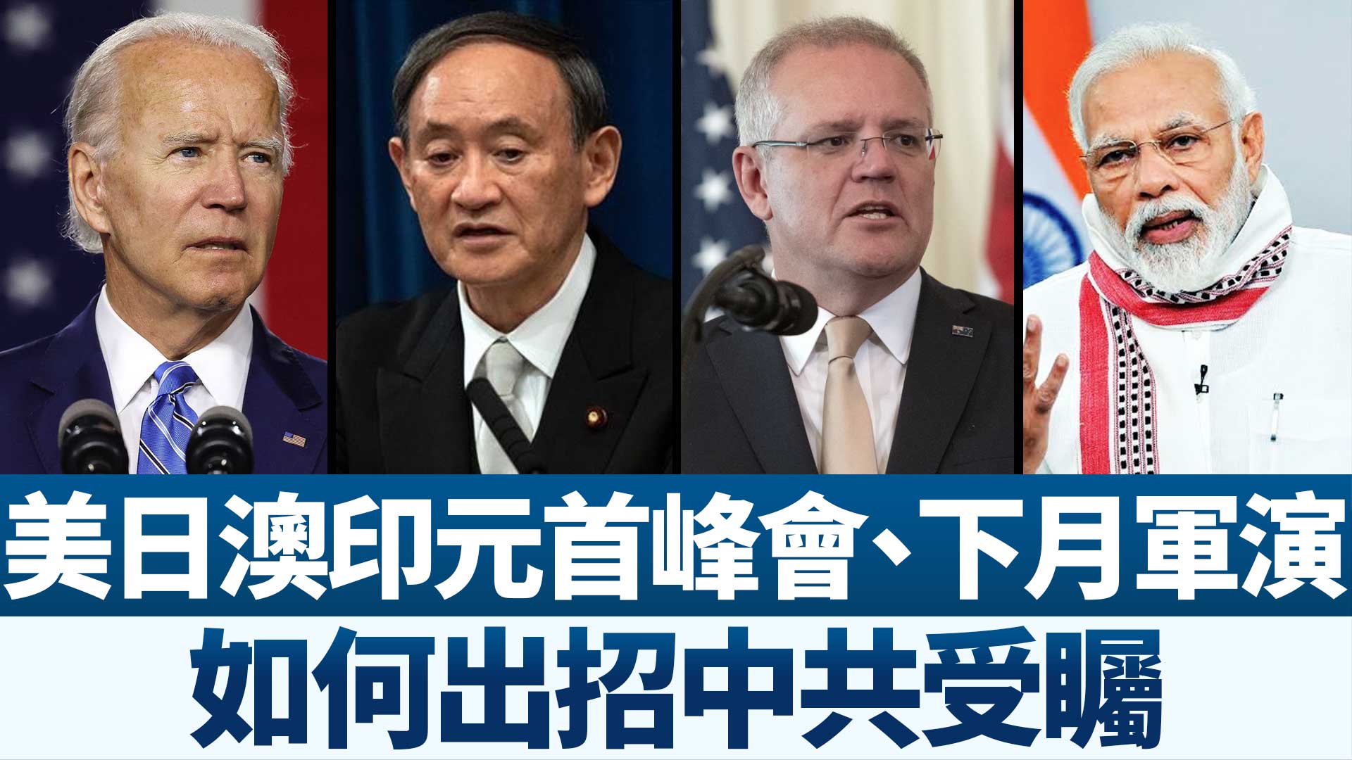 美日澳印12日領袖峰會下月軍演 如何出招中共受矚