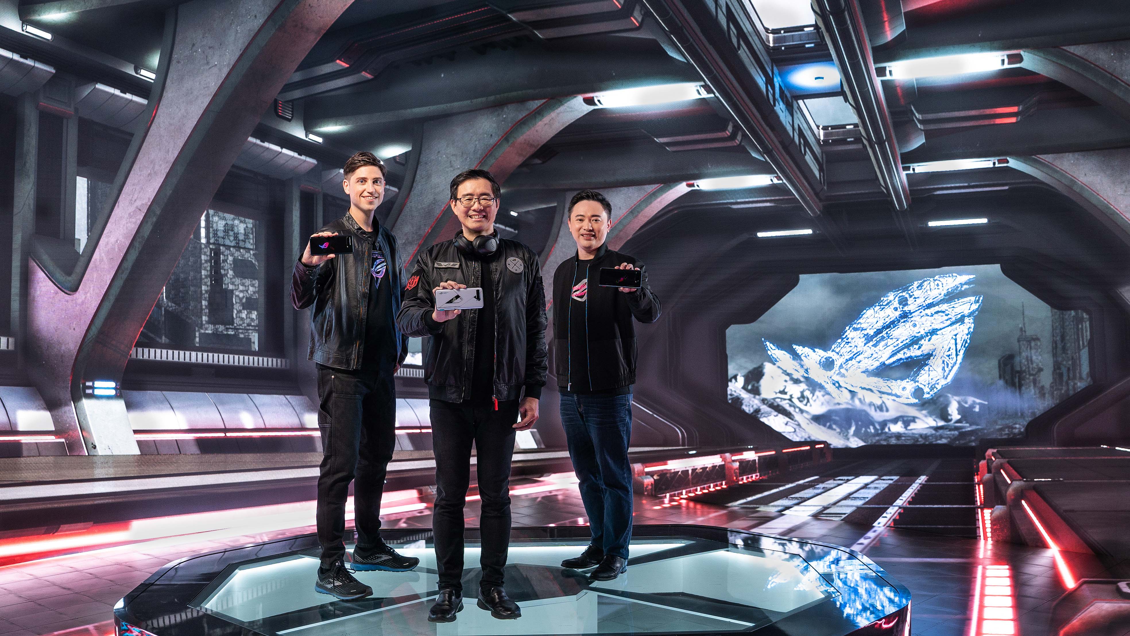 華碩共同執行長許先越(中)領銜發表地表最強電競手機ROG Phone 5。(華碩提供)
