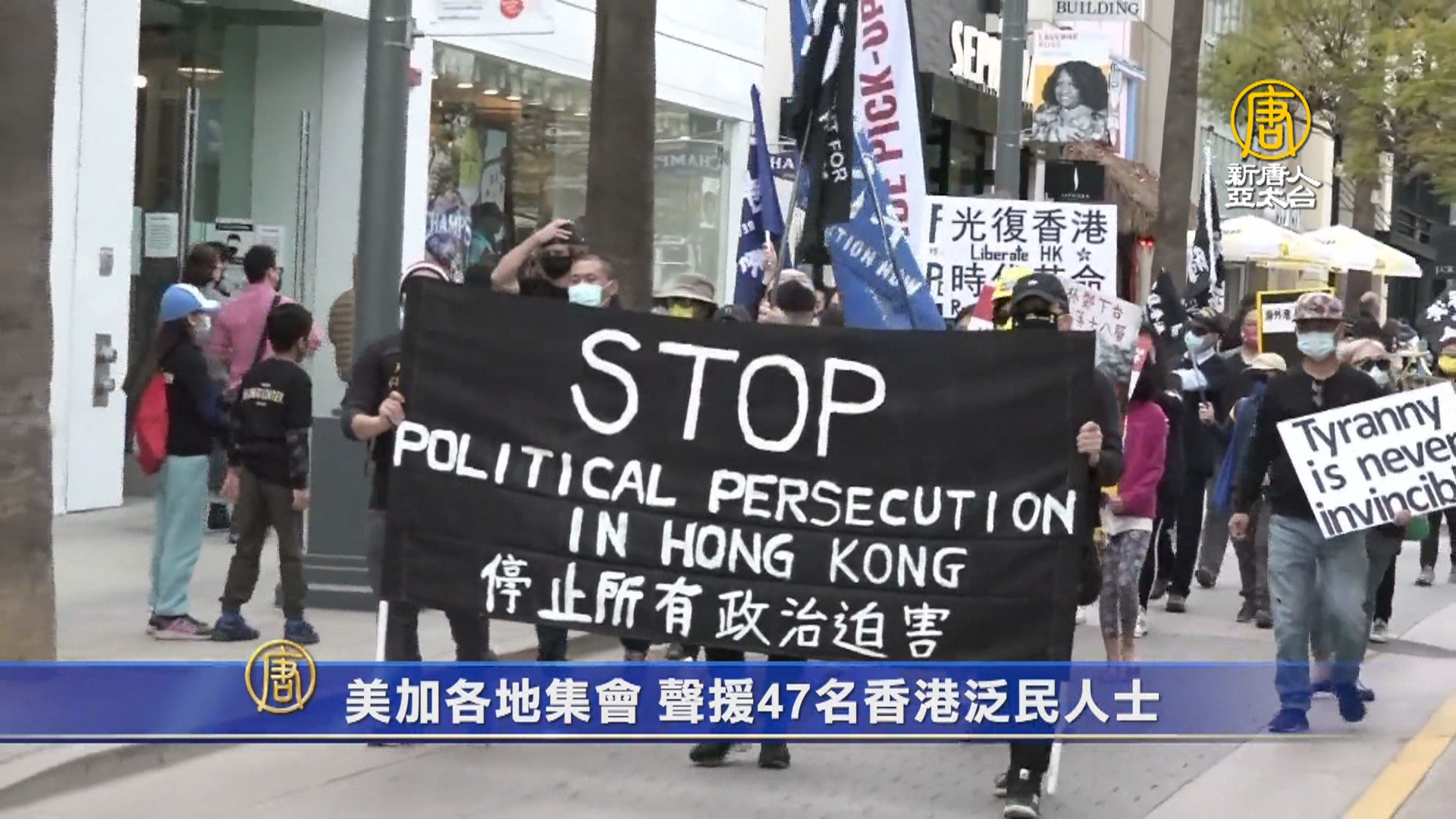 【新唐人亞太台 2021 年 03 月 10 日訊】日前,港府抓捕並起訴47名香港泛民主派人士,引發各界譴責。在美國和加拿大等地的各界民眾,紛紛來到當地的中領館前集會,抗議中共破壞香港的自由與法治,呼籲各國政府對中共採取更強硬立場。