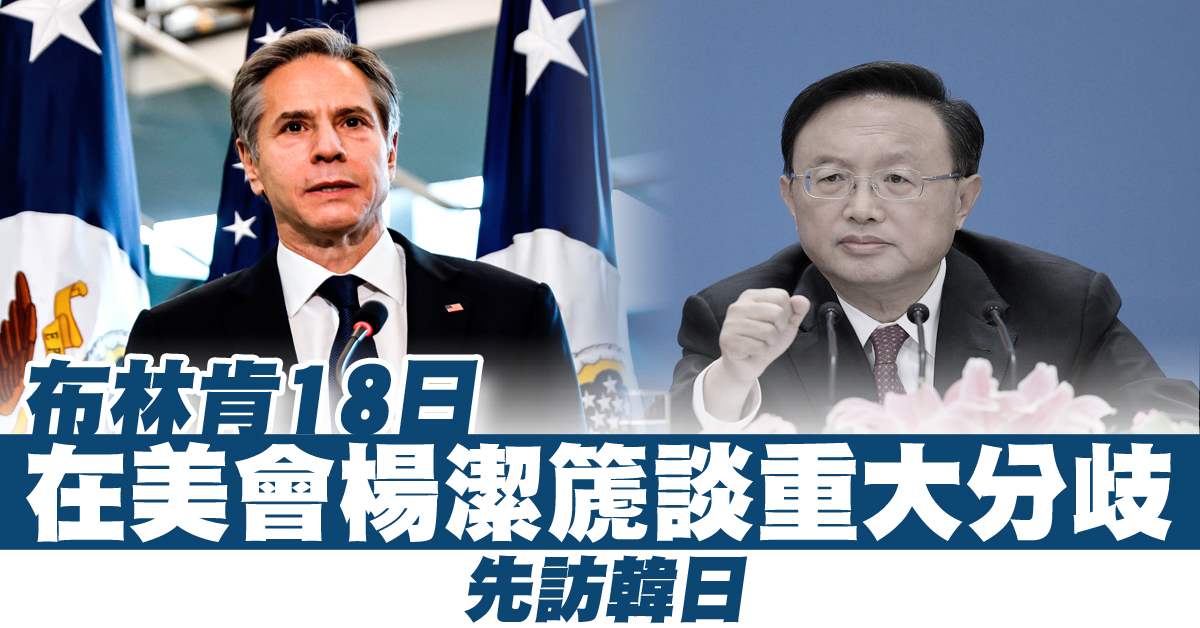 布林肯18日在美會楊潔篪談重大分歧 先訪韓日