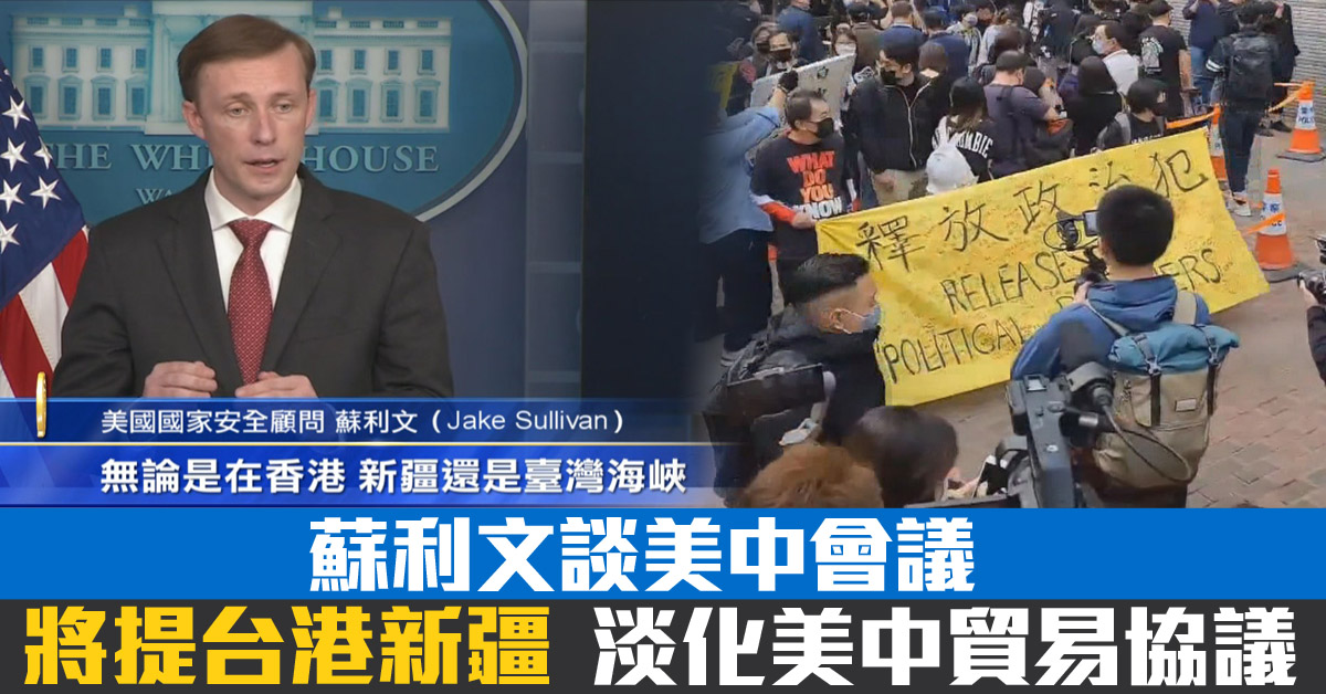 蘇利文談美中會議 將提台港新疆 淡化美中貿易協議