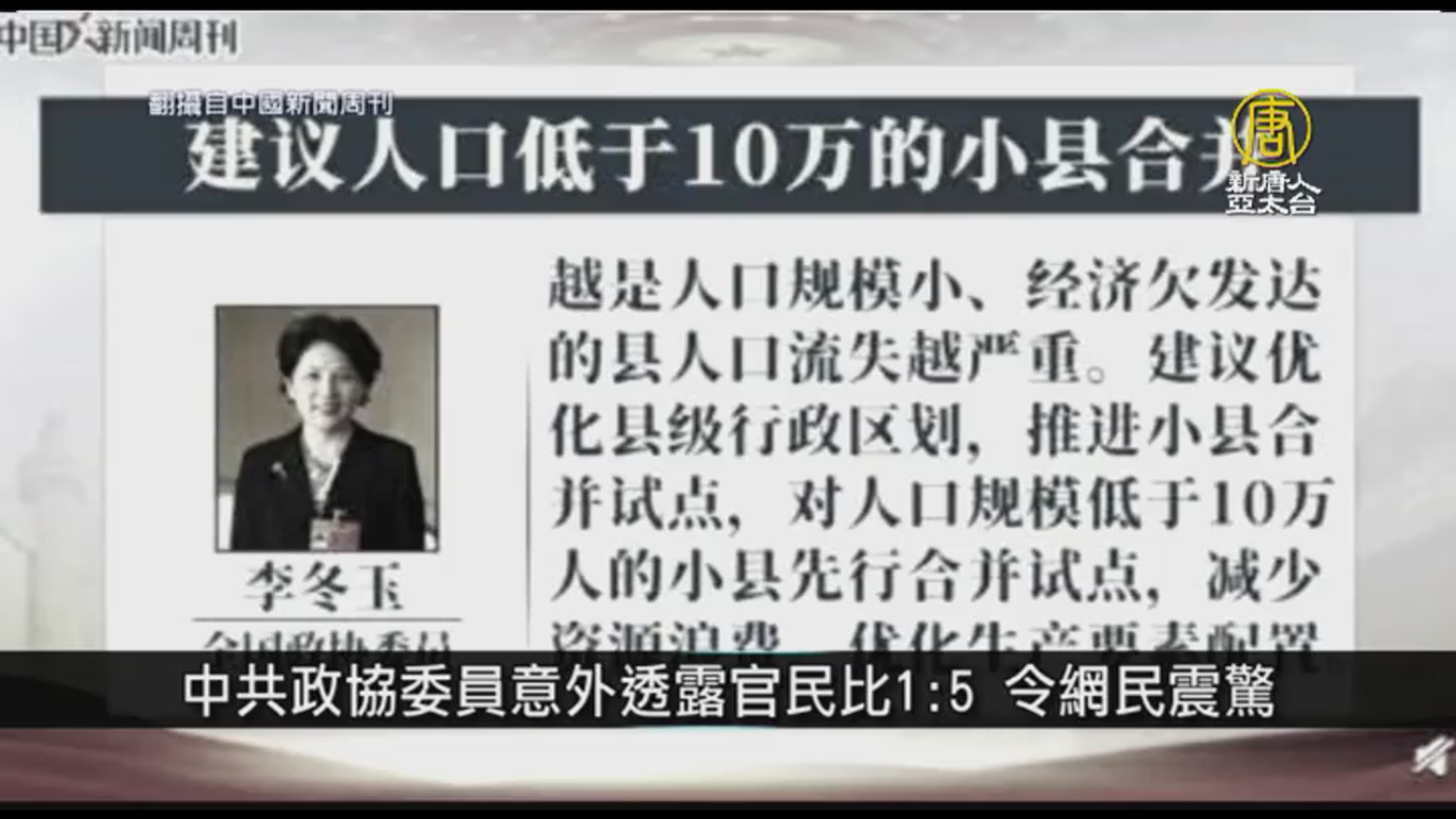 中共政協委員意外透露官民比1:5 令網民震驚|中國一分鐘