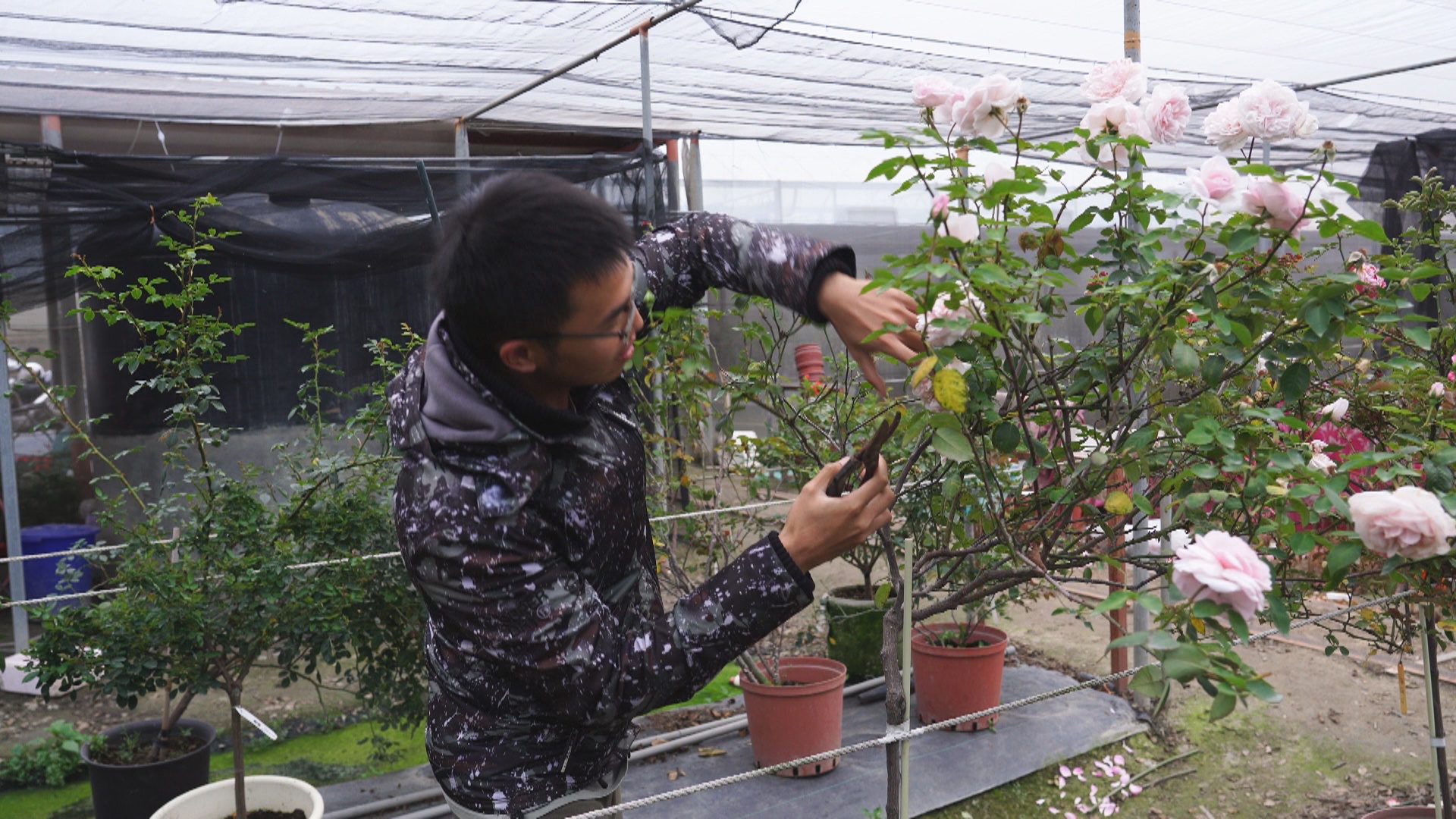 虎科大學生 謝鎮安:「就是爸爸媽媽年紀大了,然後他們也沒什麼興趣,就是在家裡會玩平板啊,然後也都退休了,就沒有做什麼事情,然後我就想說他們退休之後可以來種玫瑰,是因為就是因為它好看,然後我的另外考量點,嫁接的這種樹玫瑰,它比較高,就比較好去整理。」