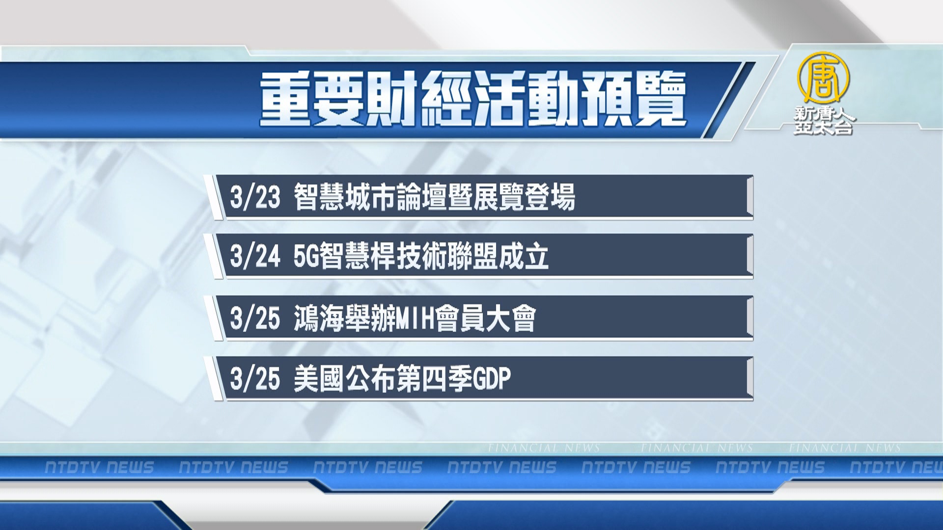 【新唐人亞太台 2021 年 03 月 20 日訊】帶您看到下週,有哪些重要的財經活動。