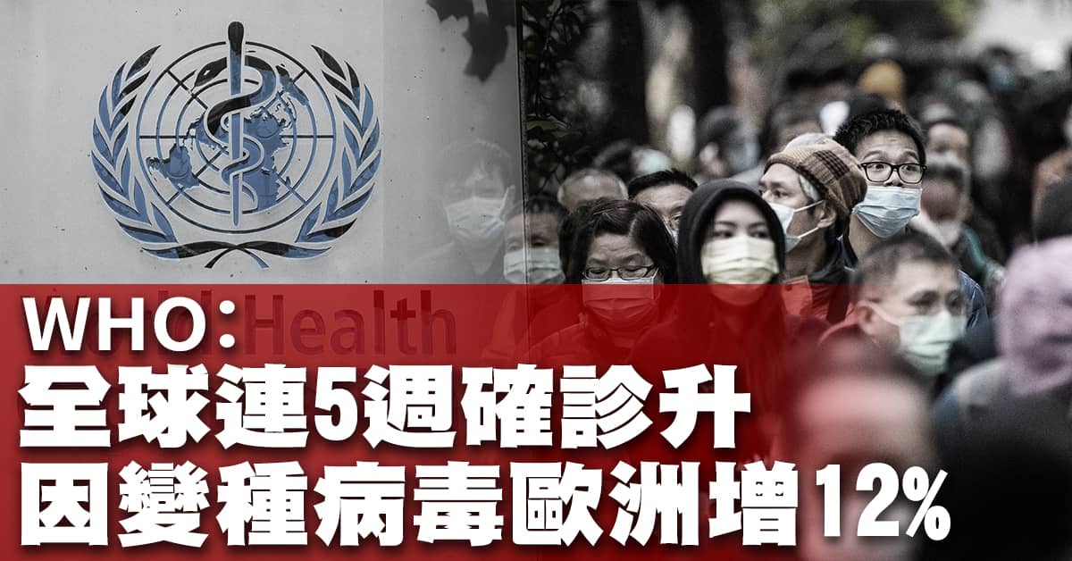 WHO:全球連5週確診升 因變種病毒歐洲增12%