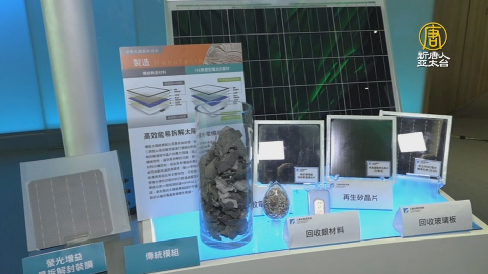 工研院材化所副組長 曹申:「它複合的結構裡面有一層,是容易去分解跟撥離的,所以當這個模組壞掉的時候,我們可以利用我們精煉純化跟分離技術,把這個膜拿掉,然後可以把電池片完整回收。」