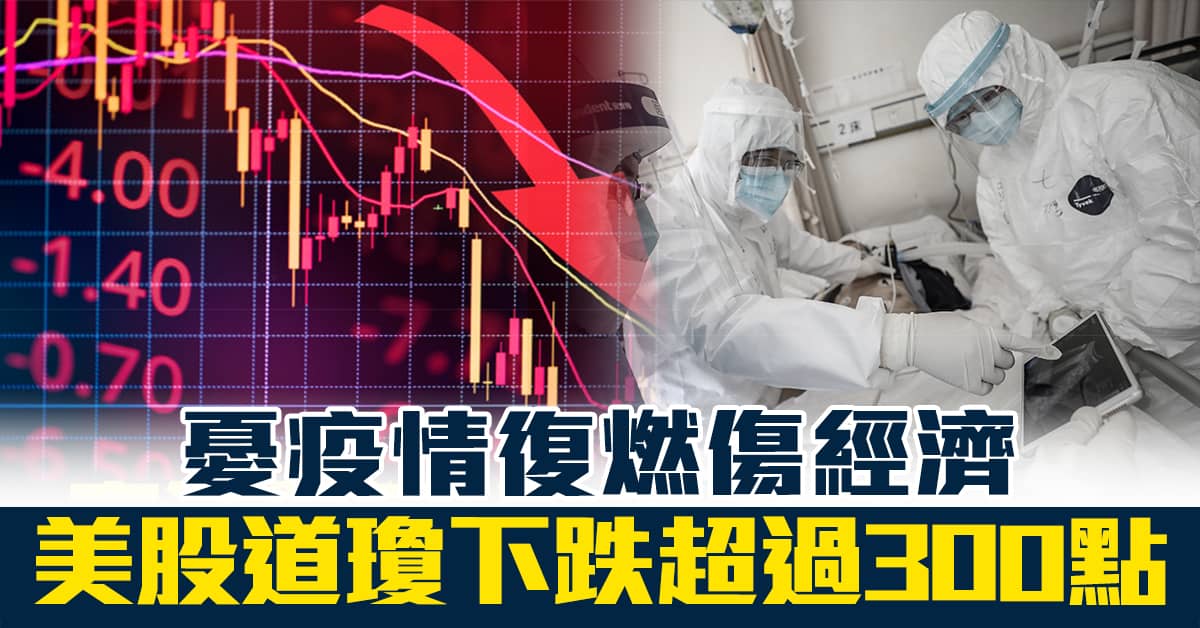 憂疫情復燃傷經濟 美股道瓊下跌超過300點