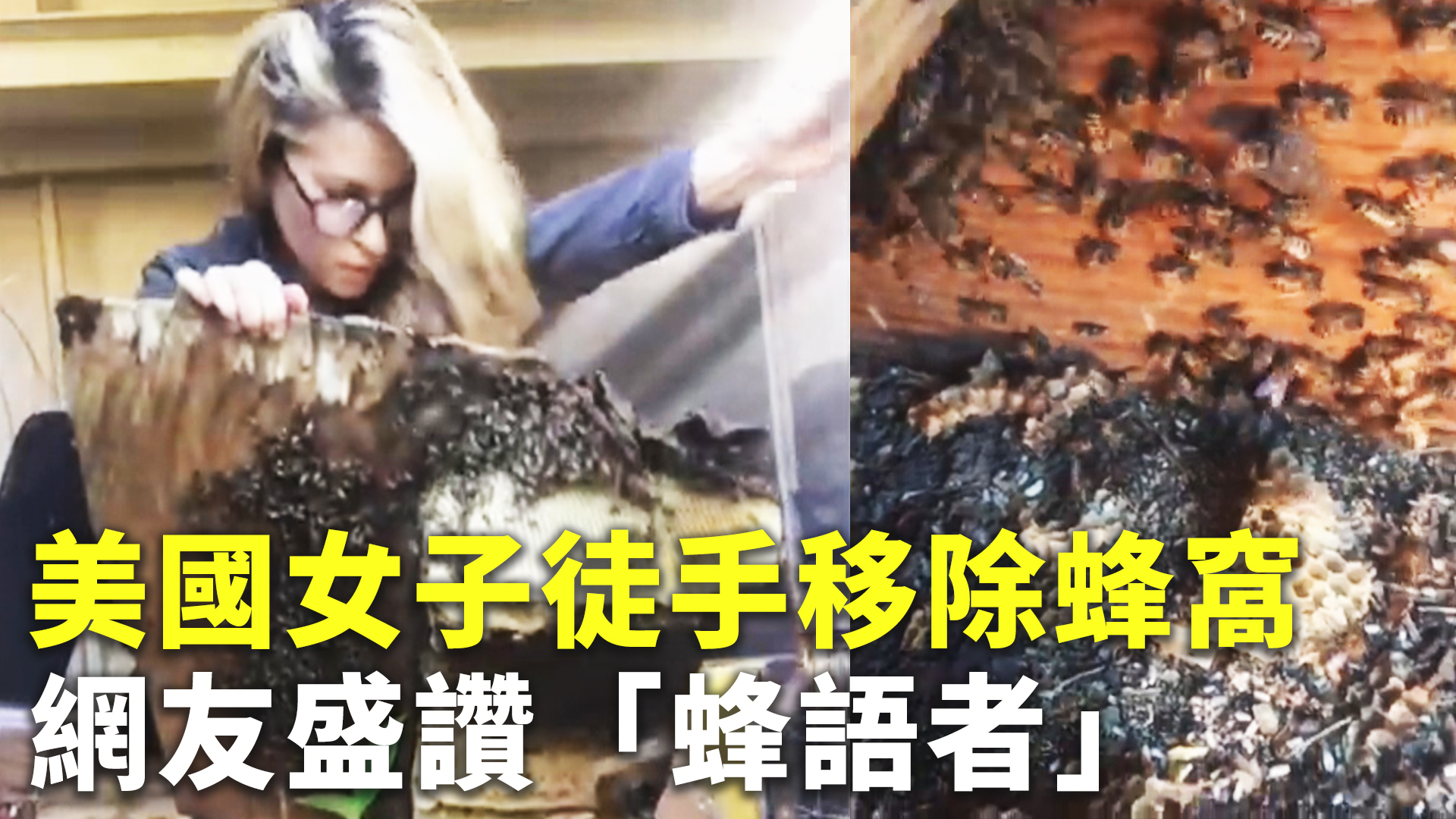 【新唐人亞太台 2021 年 03 月 26 日訊】蜜蜂可以傳播花粉,對於植物的繁衍貢獻良多。但蜜蜂具有攻擊性,所以人或其他動物看到蜂窩都避而遠之。不過,網上一段熱傳的短片顯示,有一名美國女子竟然在沒有任何防護裝備的情況下,徒手將一個巨大的蜂窩移除,令人嘖嘖稱奇。