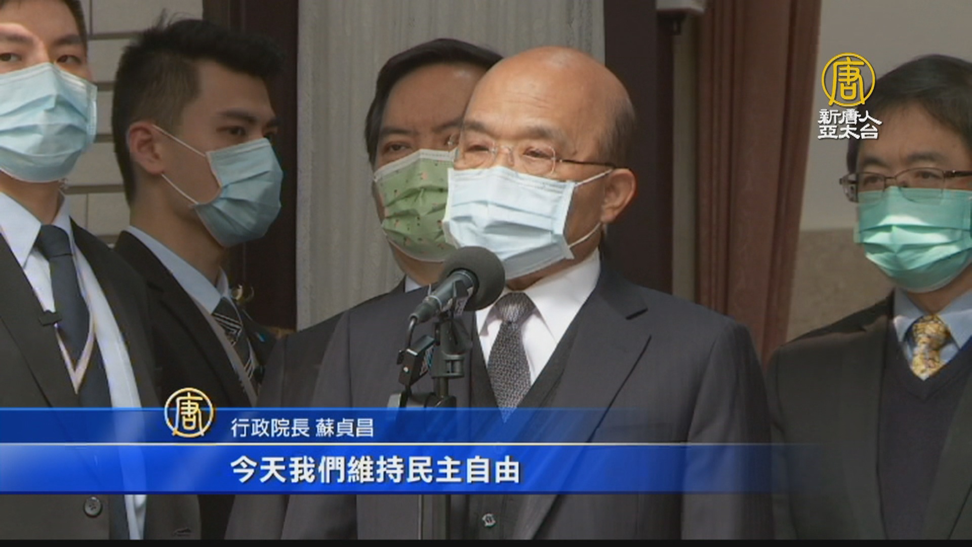 行政院長 蘇貞昌:「有些人如果是認識不清,或者是基於自己的利益等等,我們也希望,能夠早日看看,今天我們維持民主自由,是多麼不簡單。」