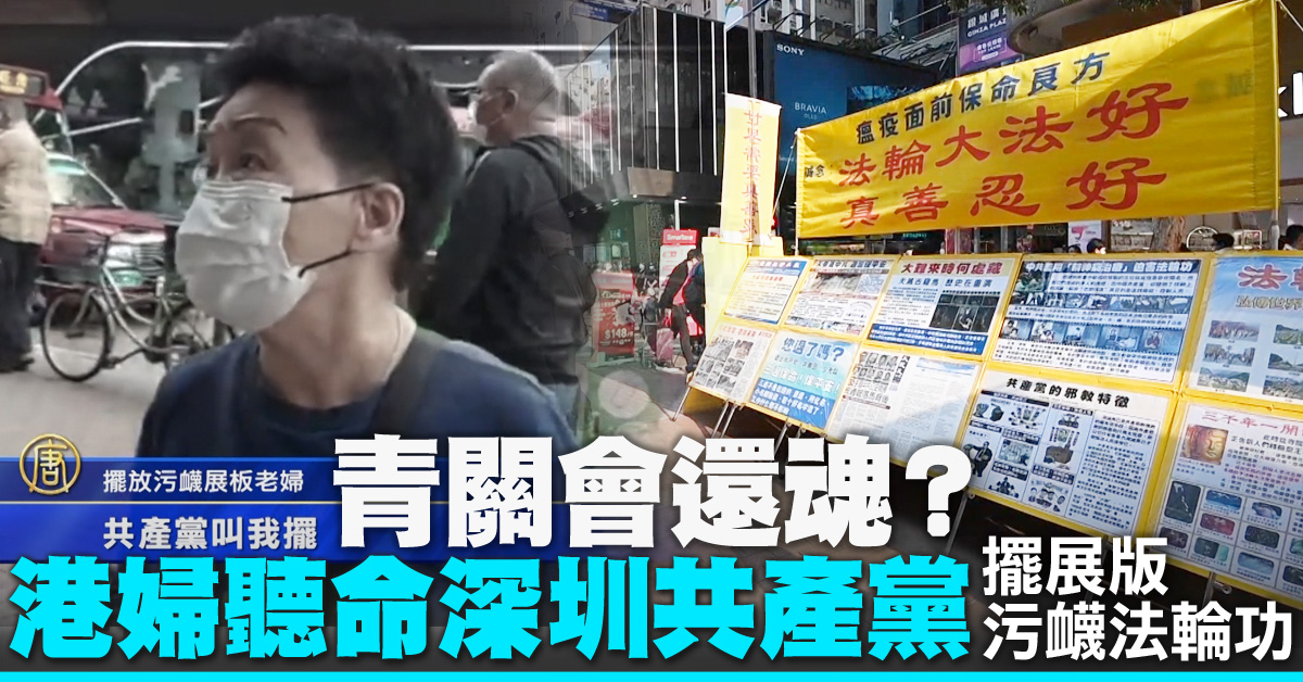 【新唐人亞太台 2021 年 03 月 26 日訊】再來關心香港,長期滋擾香港法輪功的中共外圍組織「青關會」去年底解散。最近香港鬧區街頭,又出現一批污衊法輪功的展板;有負責擺放展板的婦人,聲稱是「深圳共產黨」要她做的。有香港議員呼籲市民,向港府相關部門檢舉非法展板。