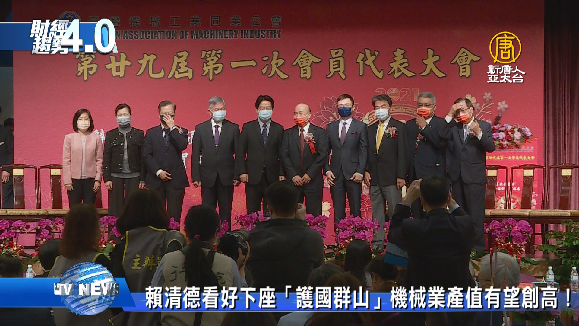 【新唐人亞太台 2021 年 03 月 27 日訊】好,那麼繼半導體業之後,台灣的下一座「護國群山」會是在哪裡?台灣機械公會召開代表大會,光大董事長柯拔希也卸下6年理事長職務,由鳳記國際董事長魏燦文接手擔任。看好今年台灣機械出口值和產值,有望雙雙創下新高,副總統賴清德就說,台灣機械業,就是另一座「護國群山。