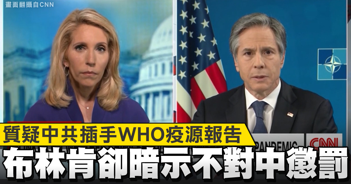 質疑中共插手WHO疫源報告 布林肯卻暗示不對中懲罰