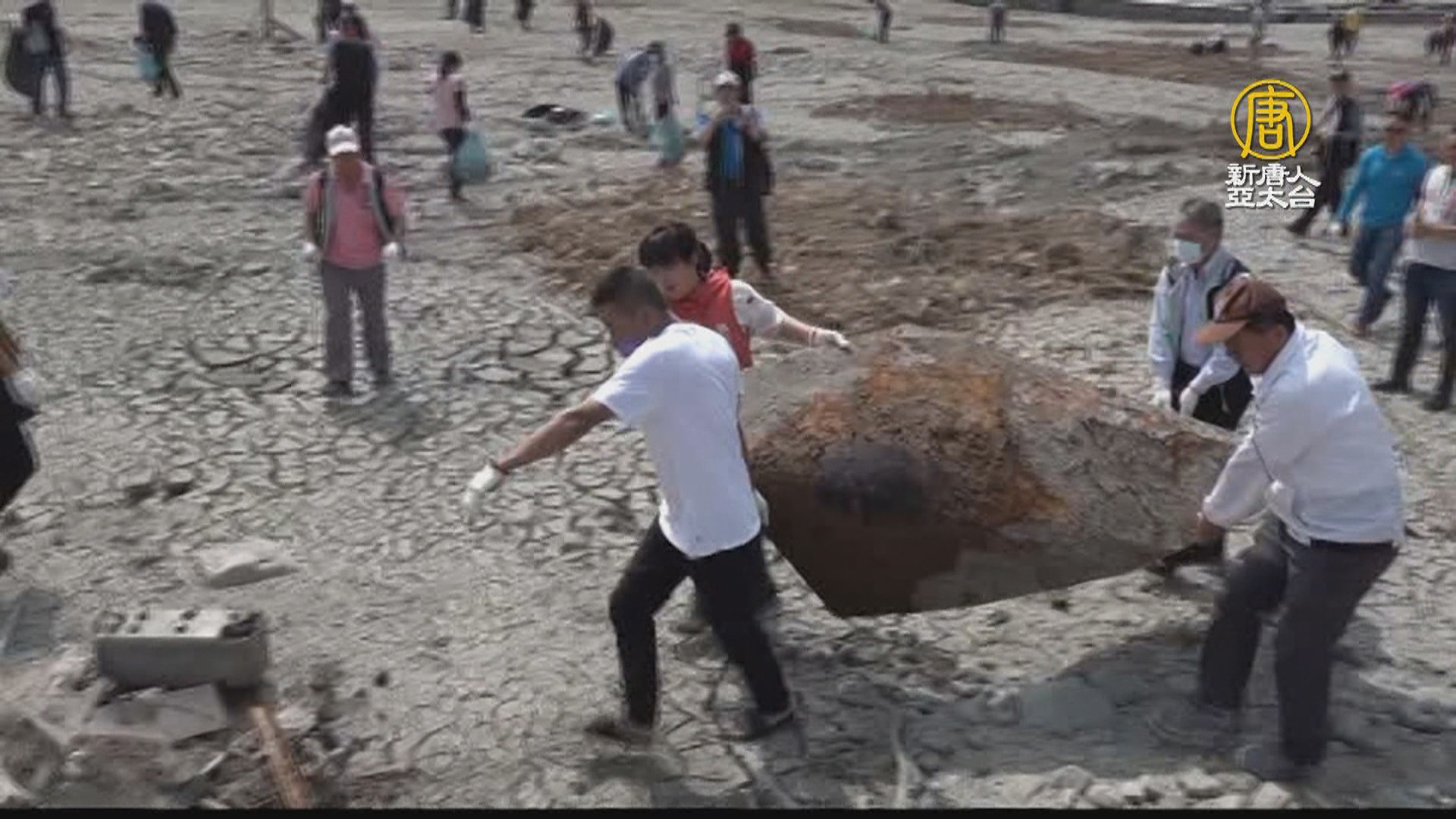 【新唐人亞太台 2021 年 03 月 29 日訊】久旱不雨,日月潭水位探底,也讓沉在潭底的陳年廢棄物全都浮現,上百位的伊達邵居民決定,自己的家園自己掃,28日自發性來淨攤;另外在苗栗的鯉魚潭跟明德水庫,水位也降至歷史新低,國軍六軍團也首次派兵進駐,協助水庫清淤。