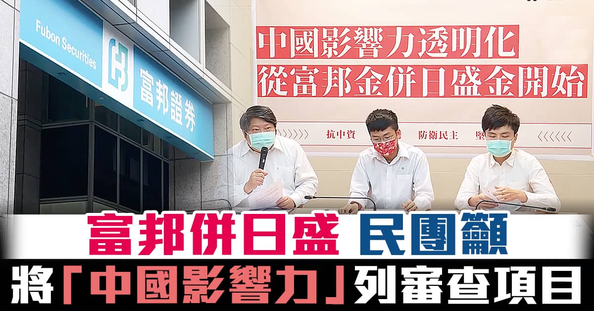 富邦併日盛 民團籲將「中國影響力」列審查項目