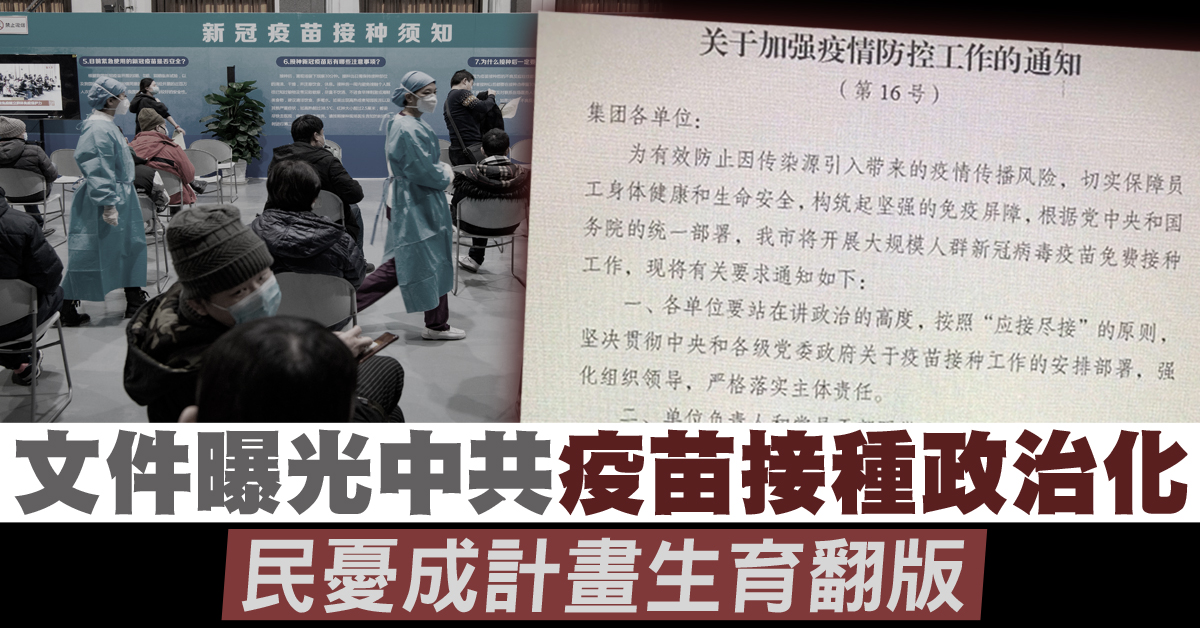 文件曝光中共疫苗接種政治化 民憂成計畫生育翻版
