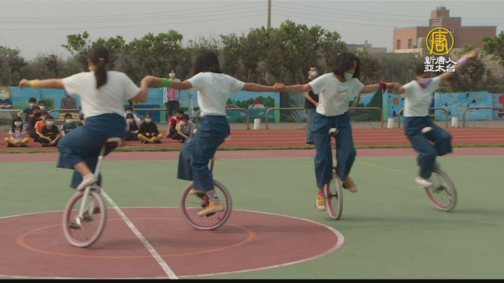 為了表達歡迎,四位學生表演團體花式獨輪車,感謝他們的到訪,校方也安排兒童節闖關活動,邀請8位到訪學生一同體驗,學習不一樣的教學方式,感受彼此的友誼。