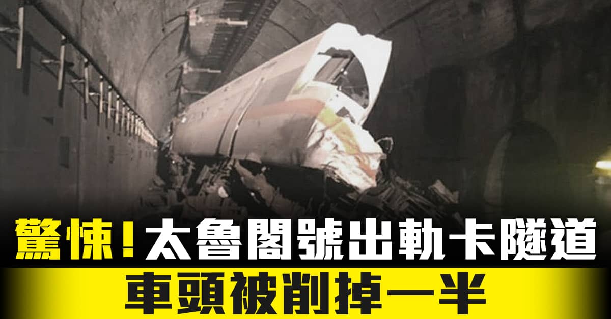 驚悚! 太魯閣號出軌卡隧道 車頭被削掉一半